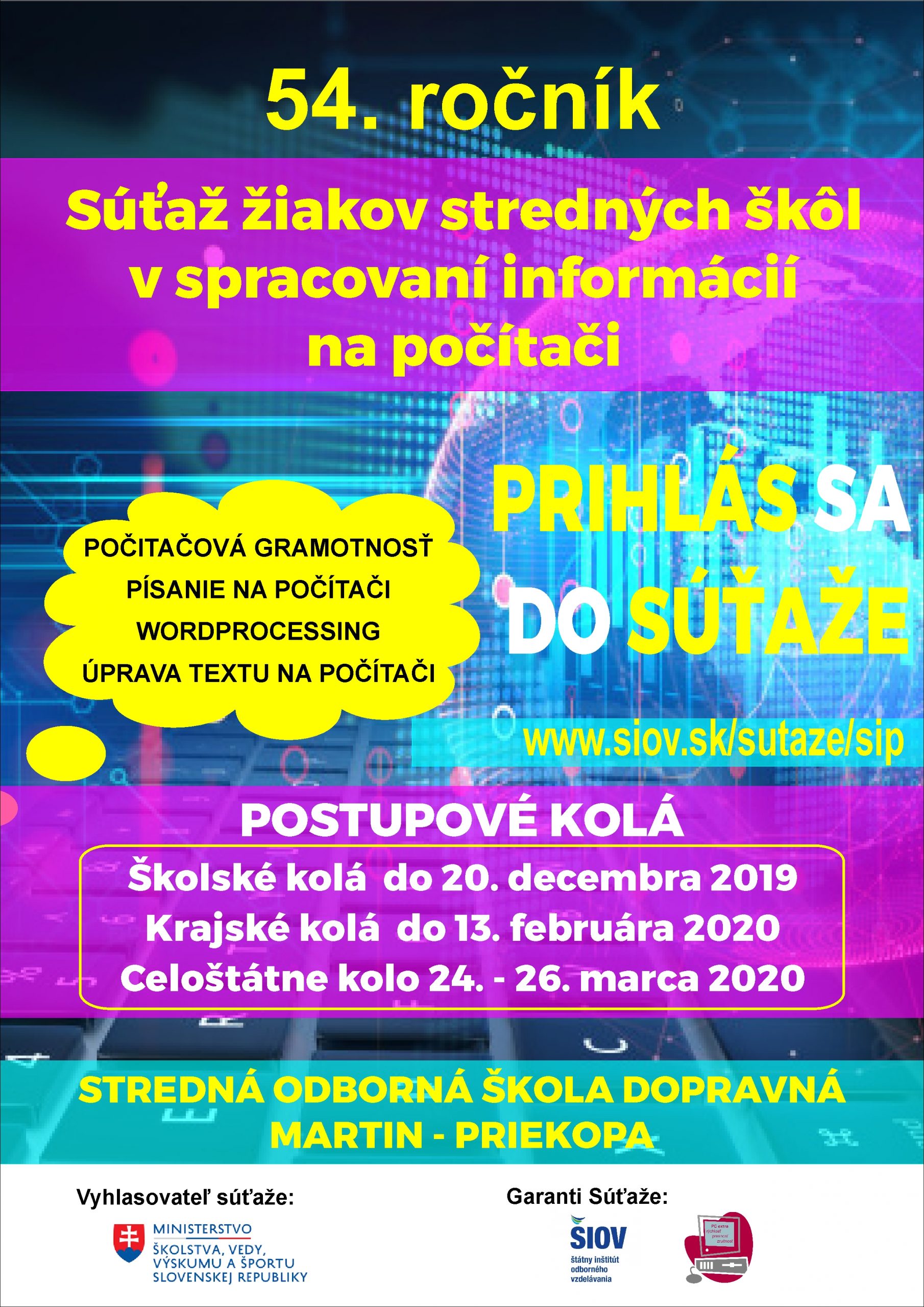 Školský rok 2019/2020 – 54. ročník súťaže žiakov stredných škôl v spracovaní informácií na počítači