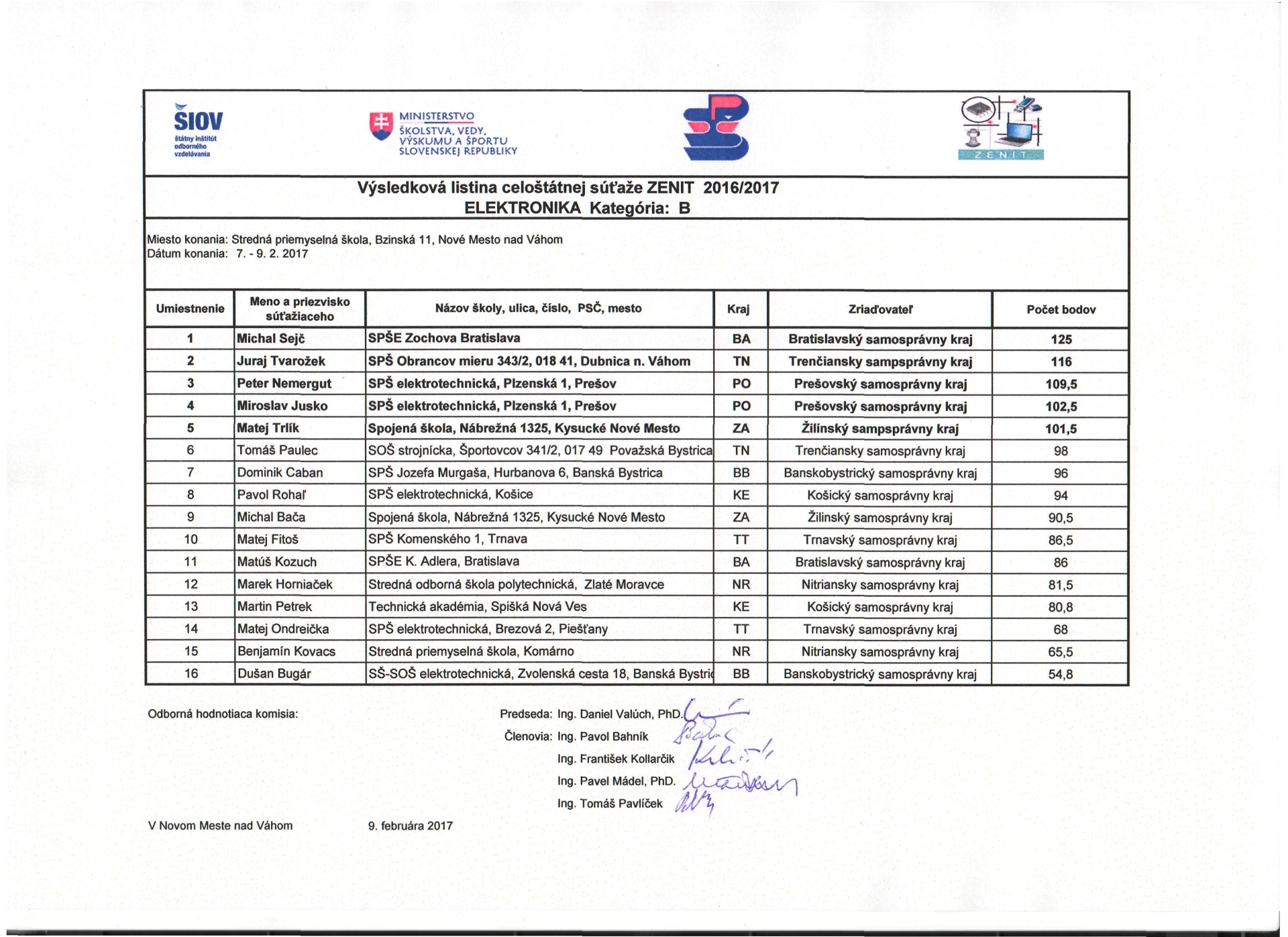 Školský rok 2016/2017