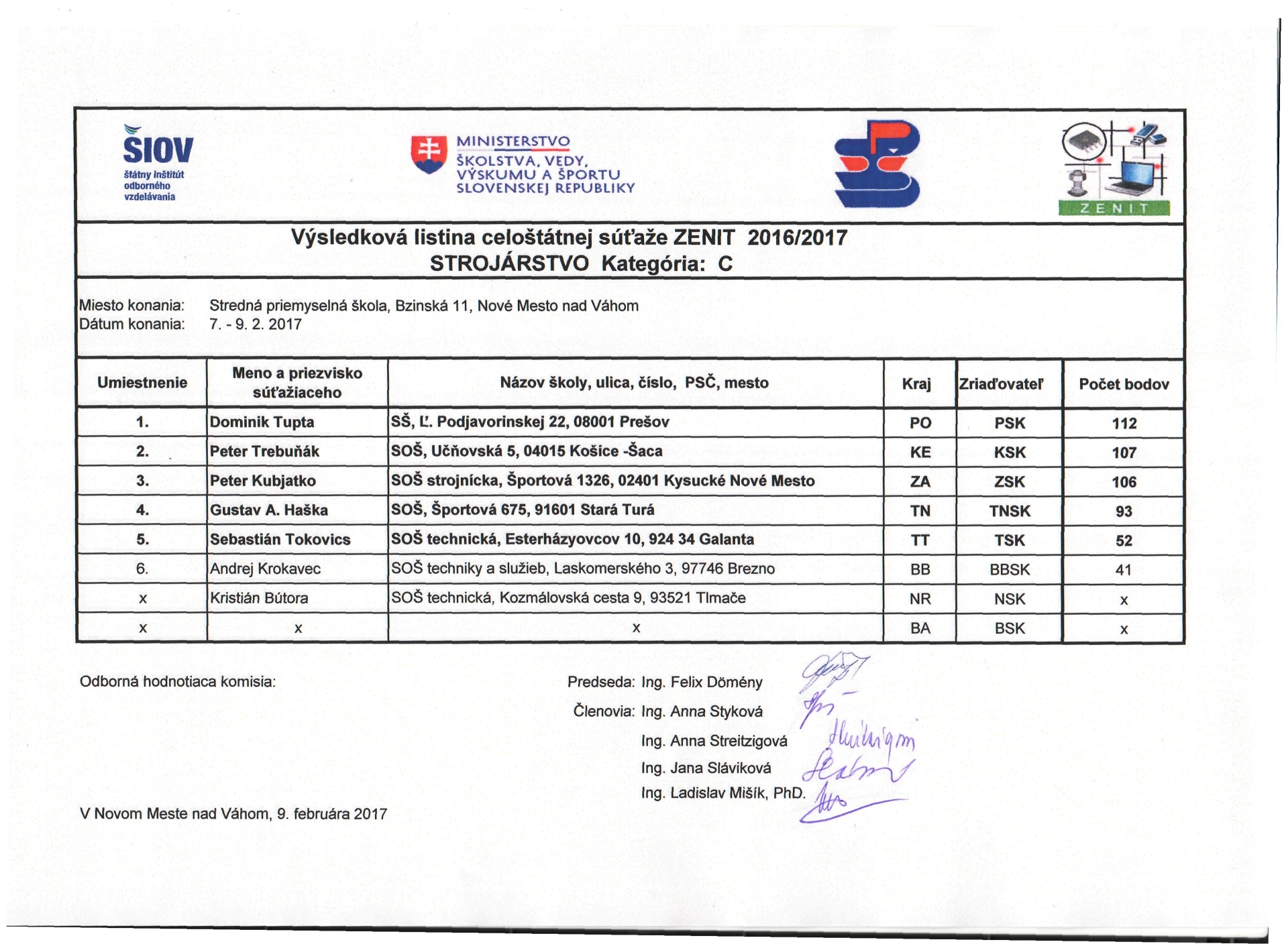 Výsledková listina ZENIT 2025